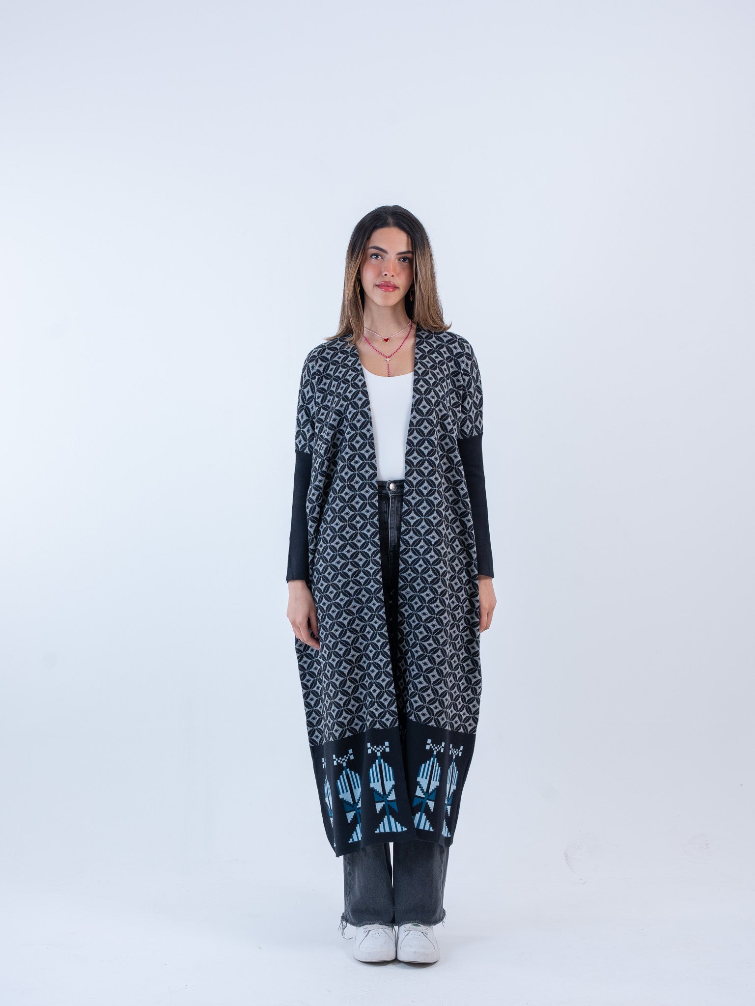 Originally designed as a summer statement, Bahja now flows in an elongated silhouette that carries the same joyful spirit with a more refined presence. Light in feeling yet strong in identity, this piece blends ease, movement, and quiet elegance.