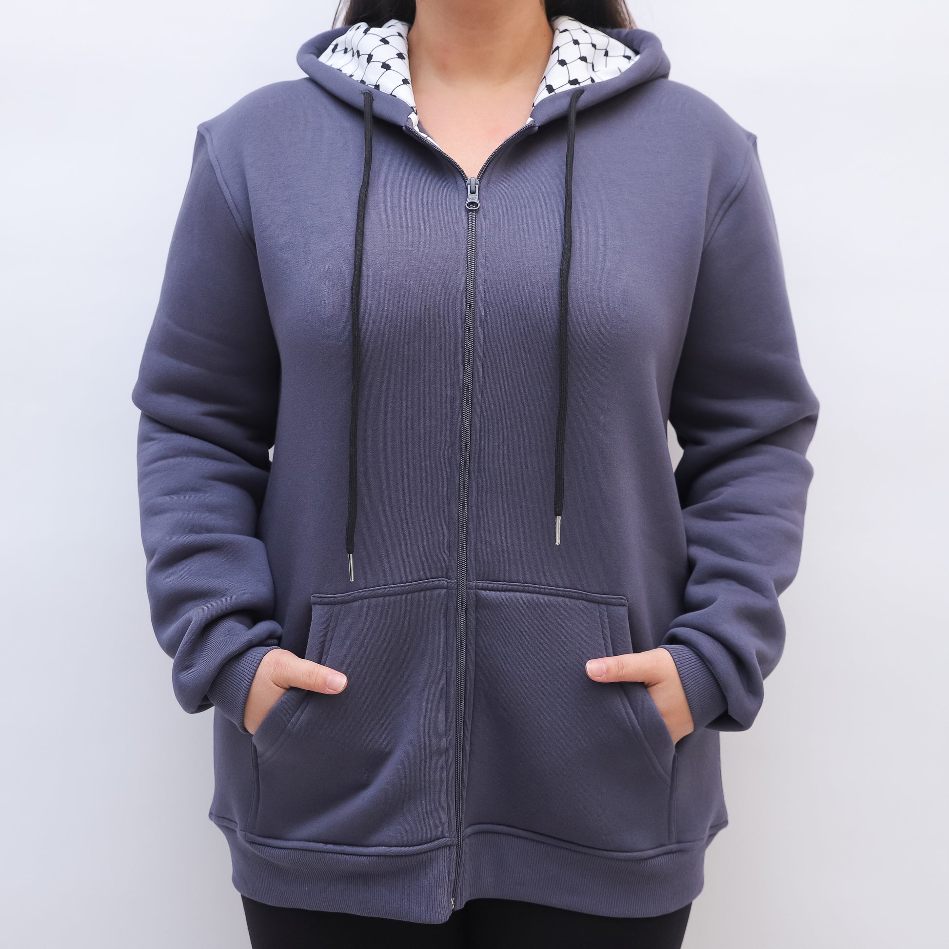 Keffiyeh hoodie Jacket- Grey-Unisex
