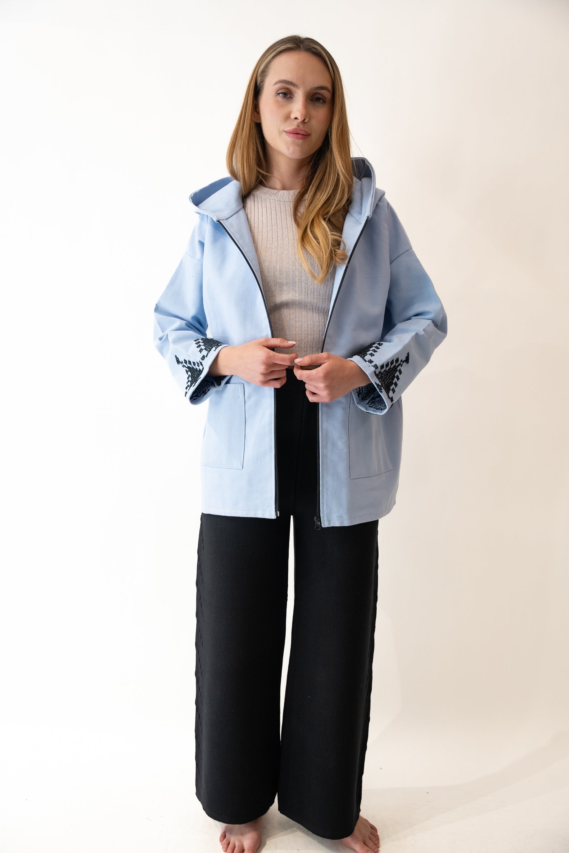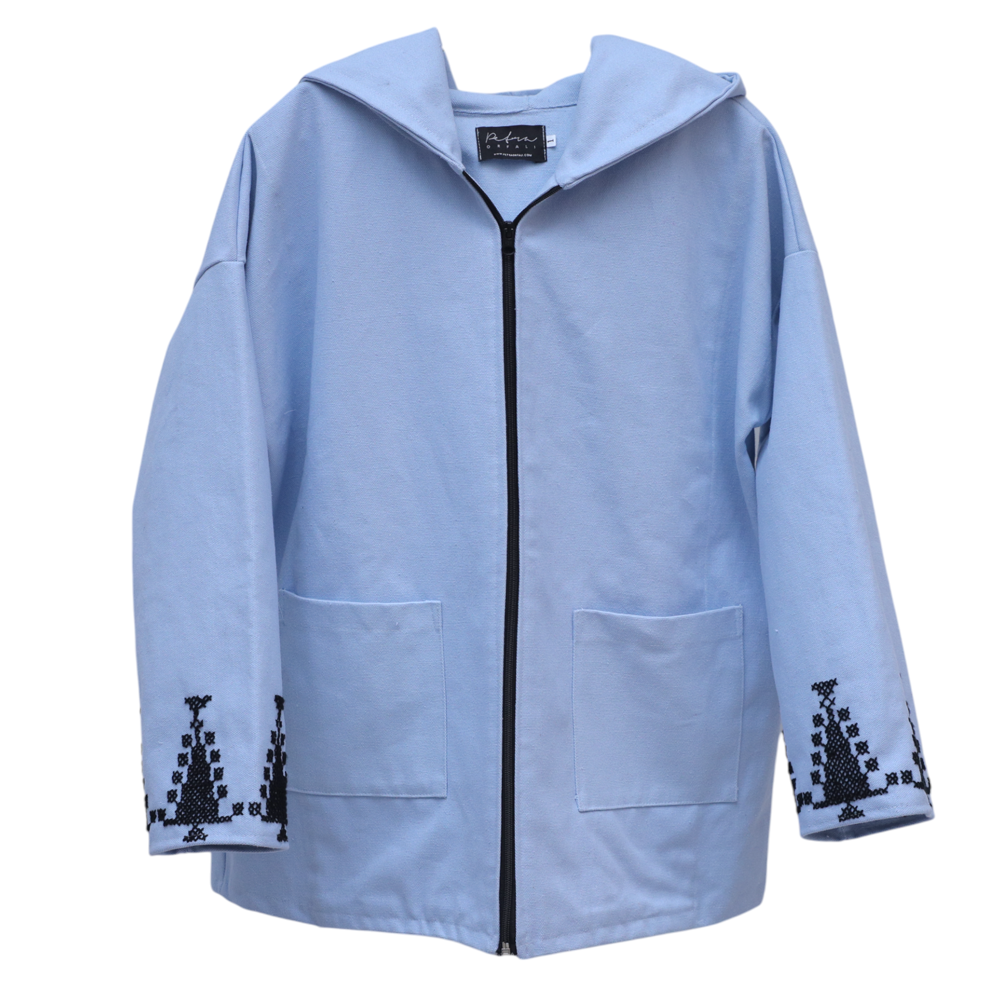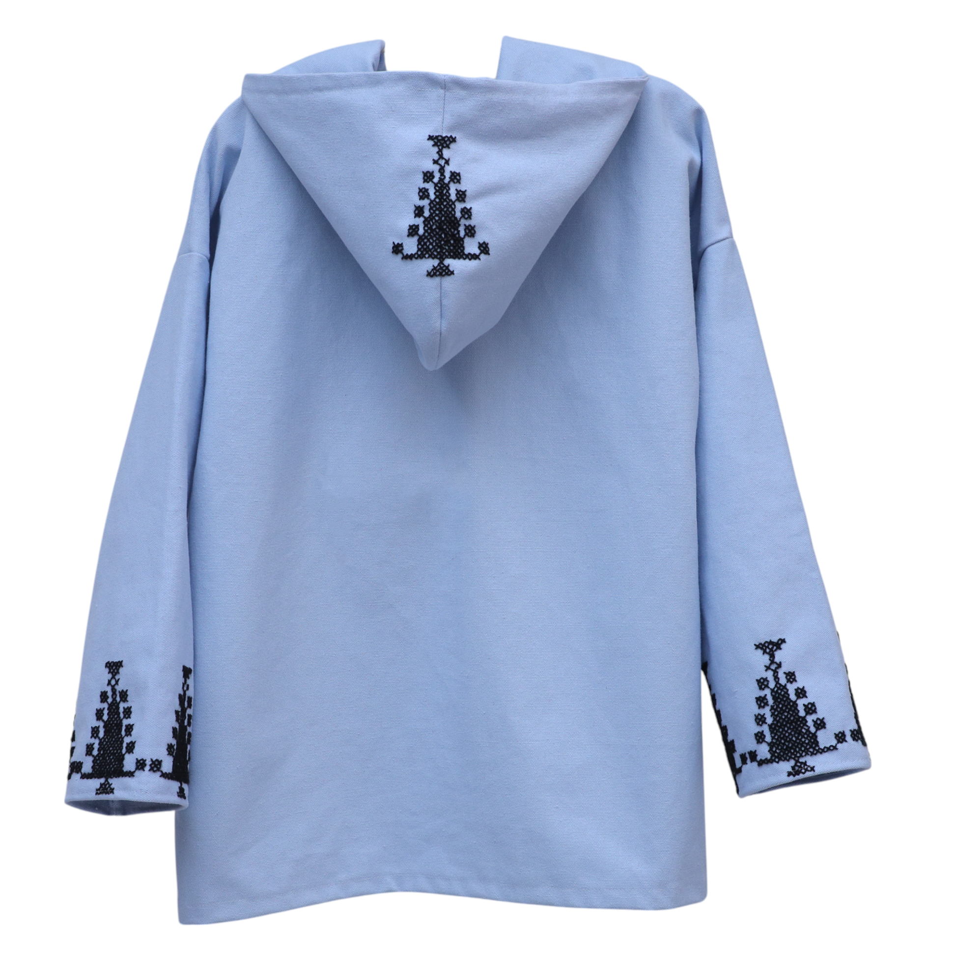 Our special limited edition of the navy Palestinian handmade embroidery design on the sleeves & cap.