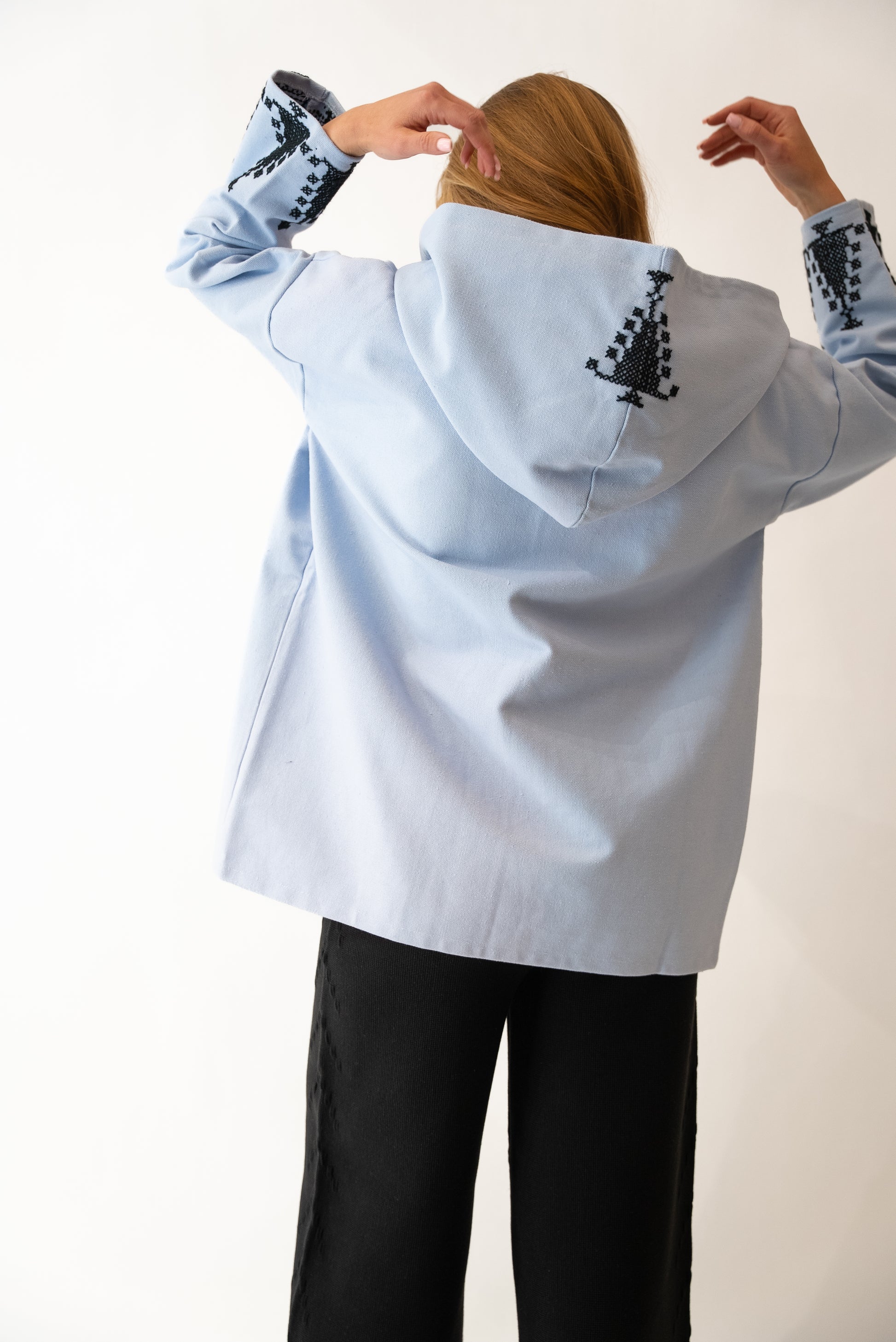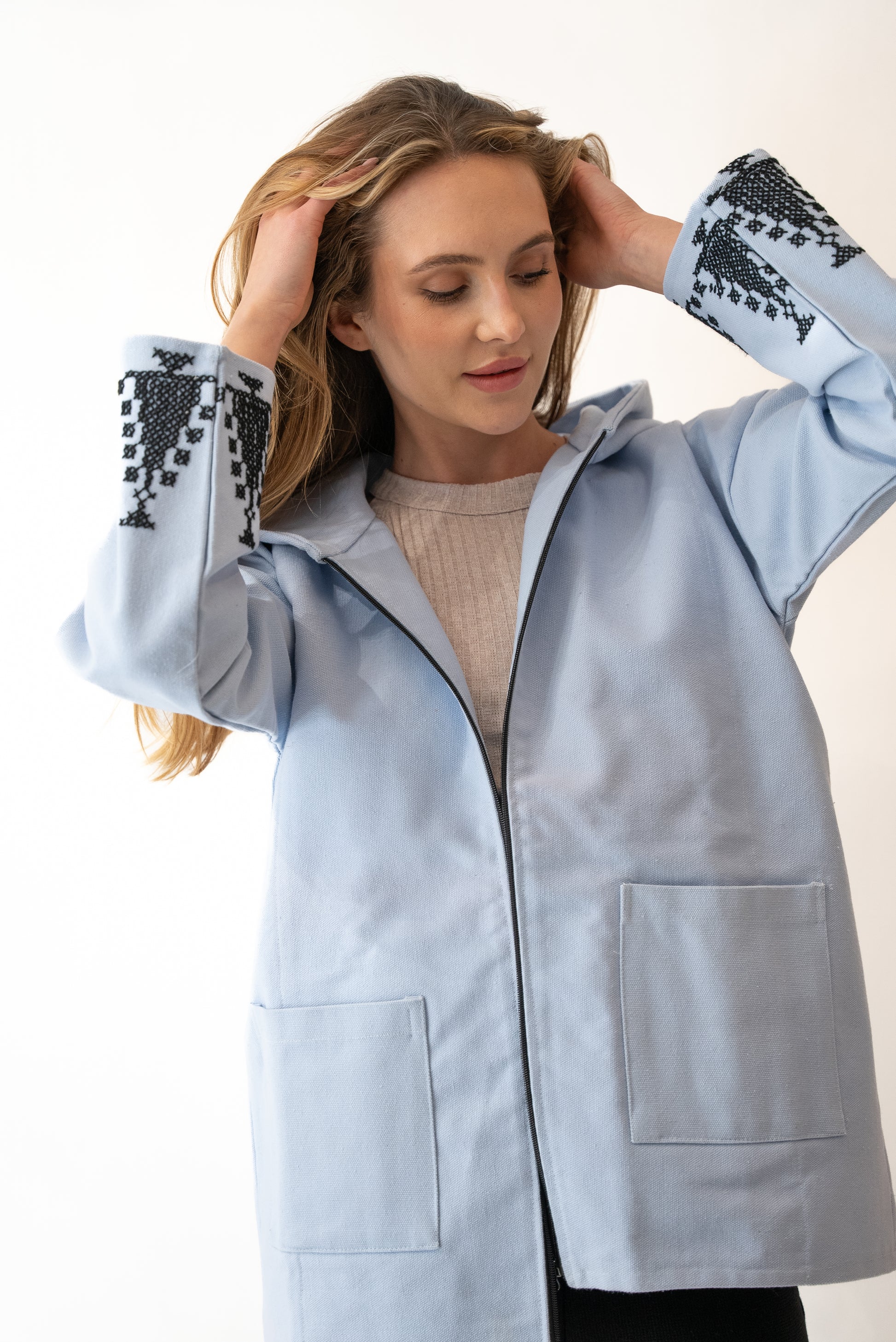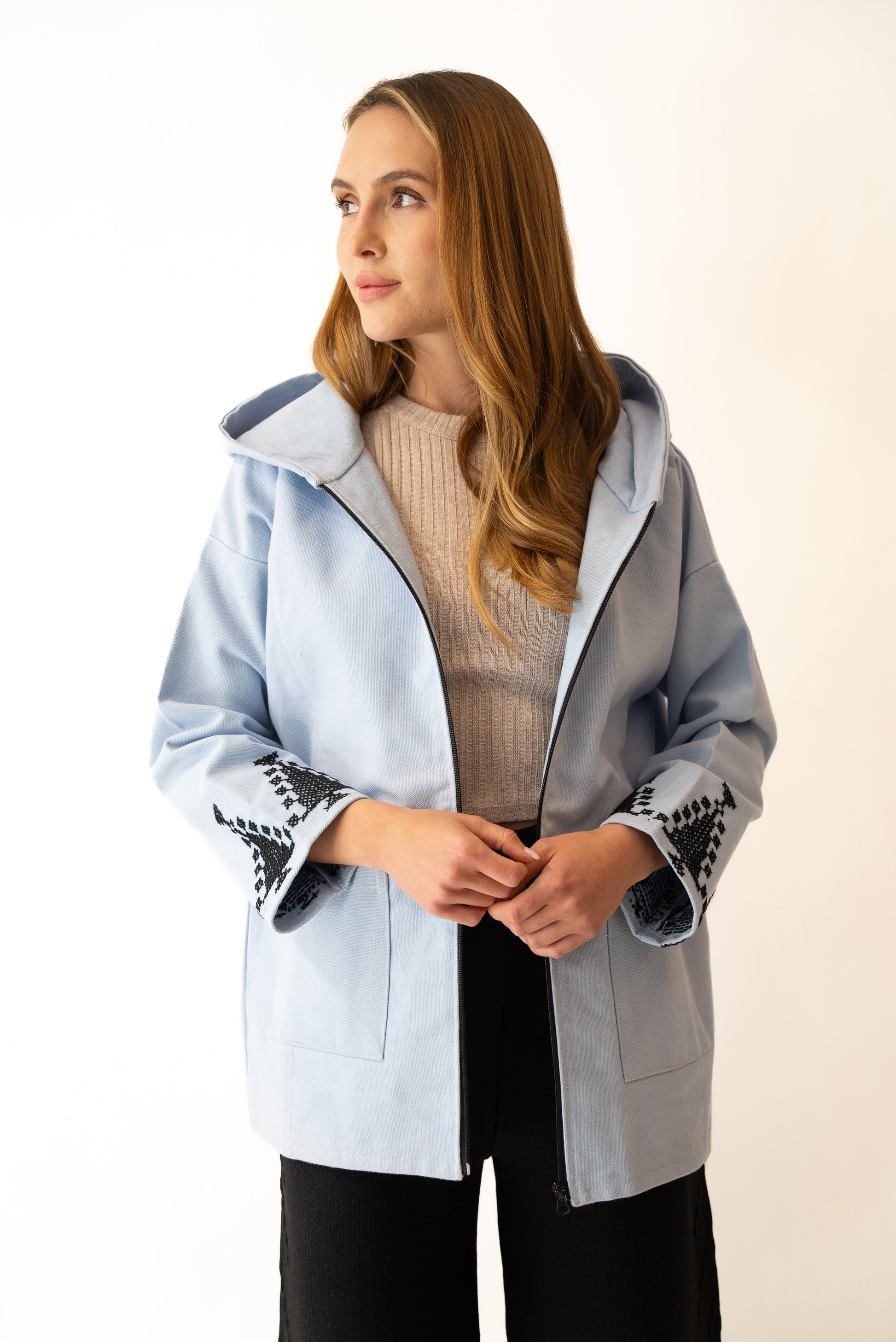 Our special limited edition of the navy Palestinian handmade embroidery design on the sleeves & cap.