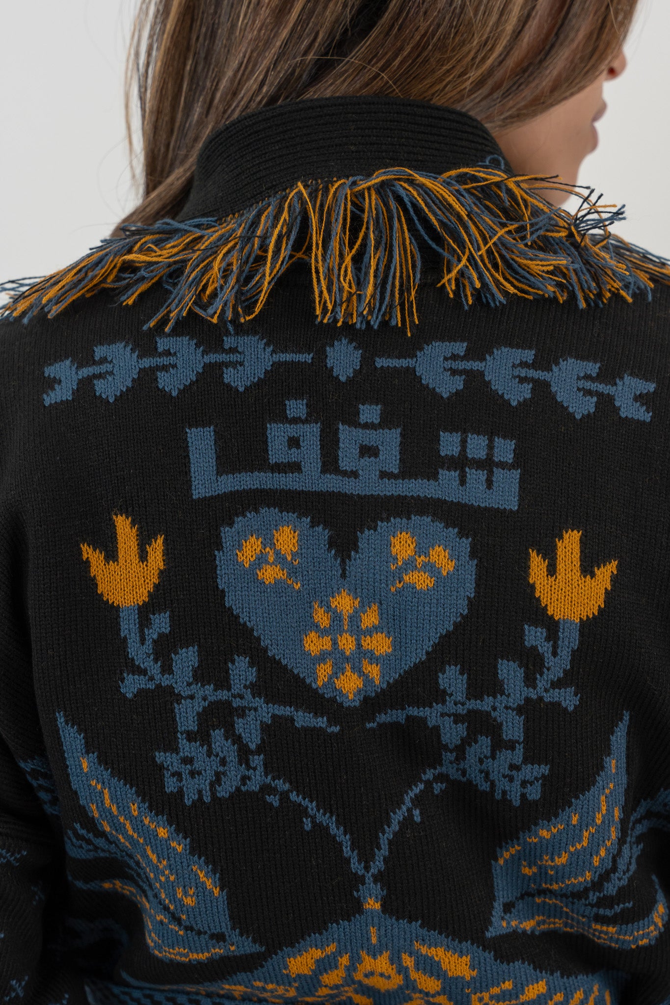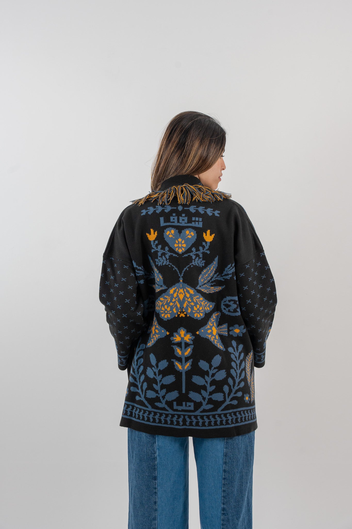 Featuring bold graphic elements, a statement fringe collar, and the word Love across the back, this piece embraces feeling — unapologetically. Designed to blend cultural motifs with a trend-forward silhouette, Shaghaf is expressive, layered, and intentionally different.